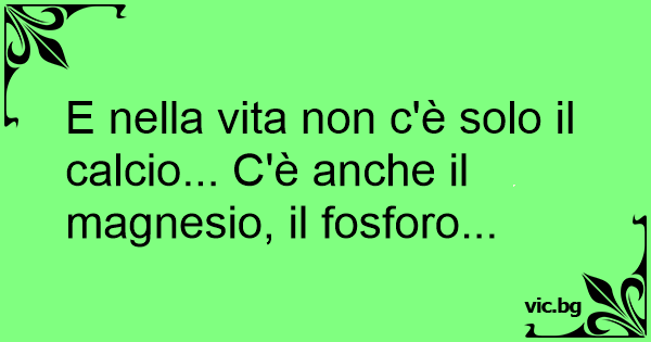 E nella vita non c'è solo il calcio... C'è anche il magnesio, il fosforo...