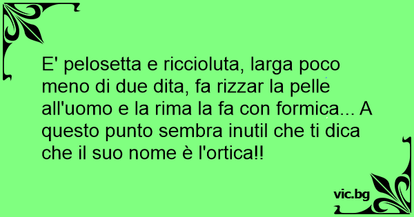E' pelosetta e riccioluta, larga poco meno di due dita, fa rizzar la pelle all'uomo e la rima la fa соn formica... A questo punto sembra inutil che ti dica che il suo nome è l'ortica!!