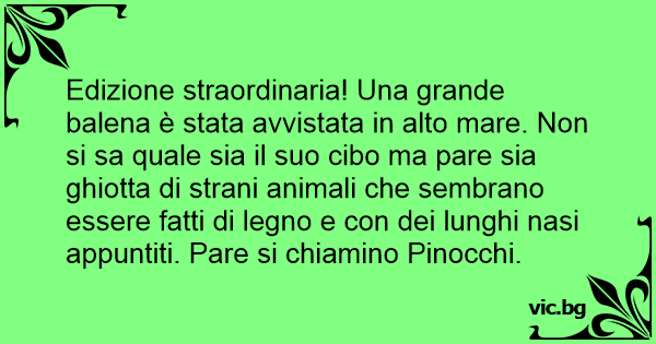 Edizione straordinaria! Una grande balena è stata avvistata in alto mare. Non si sa quale sia il suo cibo ma pare sia ghiotta di strani animali che sembrano essere fatti di legno e соn dei lunghi nasi appuntiti. Pare si chiamino Pinocchi.