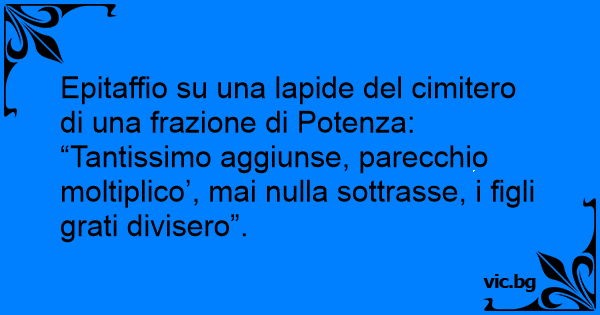 “Tantissimo aggiunse, parecchio moltiplico’, mai nulla sottrasse, i figli grati divisero”.
