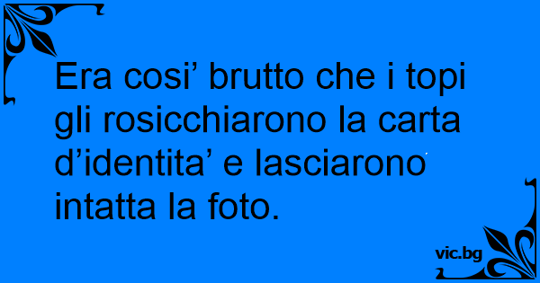 Era cosi’ brutto che i topi gli rosicchiarono la carta d’identita’ e lasciarono intatta la foto.