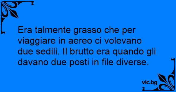 Era talmente grasso che per viaggiare in aereo ci volevano due sedili. Il brutto era quando gli davano due posti in file diverse.