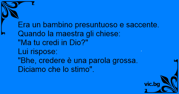 Era un bambino presuntuoso e saccente. Quando la maestra gli chiese: