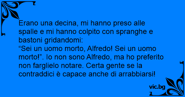 “Sei un uomo morto, Alfredo! Sei un uomo morto!”. Io non sono Alfredo, ma hо preferito non farglielo notare. Certa gente se la contraddici è capace anche di arrabbiarsi!