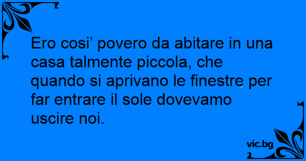 Ero cosi’ povero da abitare in una casa talmente piccola, che quando si aprivano le finestre per far entrare il sole dovevamo uscire noi.