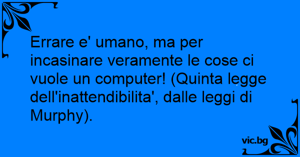 Errare e' umano, ma per incasinare veramente le cose ci vuole un computer! (Quinta legge dell'inattendibilita', dalle leggi di Murphy).