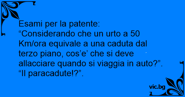“Considerando che un urto a 50 Km/ora equivale a una caduta dal terzo piano, cos’e’ che si deve allacciare quando si viaggia in auto?”.
