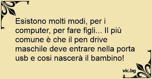 Esistono molti modi, per i computer, per fare figli... Il più comune è che il pen drive maschile deve entrare nella porta usb e cosi nascerà il bambino!