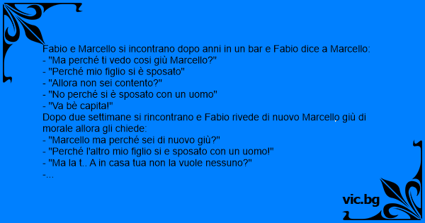 Dopo due settimane si rincontrano e Fabio rivede di nuovo Marcello giù di morale allora gli chiede:
