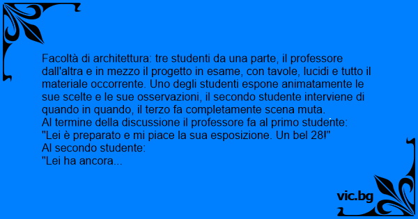 "Lei ha ancora qualche incertezza, ma mi pare abbastanza preparato. Le darei un 26!"