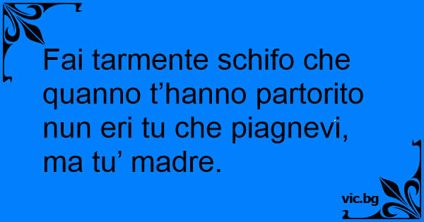 Fai tarmente schifo che quanno t’hanno partorito nun eri tu che piagnevi, ma tu’ madre.