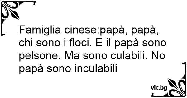 Famiglia cinese:papà, papà, chi sono i floci. E il papà sono pelsone. Ma sono culabili. No papà sono inculabili