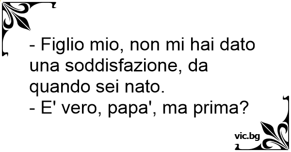 - Figlio mio, non mi hai dato una soddisfazione, da quando sei nato.