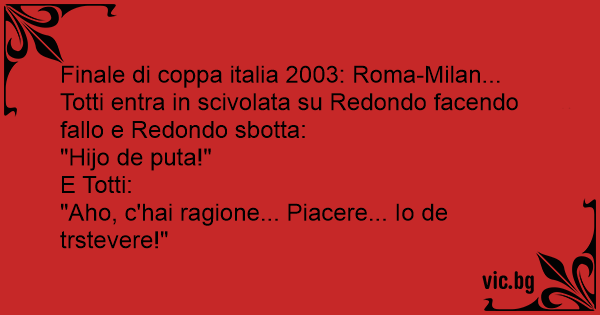 Finale di coppa italia 2003: Roma-Milan... Totti entra in scivolata su Redondo facendo fallo e Redondo sbotta: