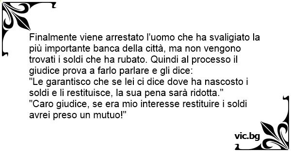 Finalmente viene arrestato l'uomo che ha svaligiato la più importante banca della città, ma non vengono trovati i soldi che ha rubato. Quindi al processo il giudice prova a farlo parlare e gli dice: