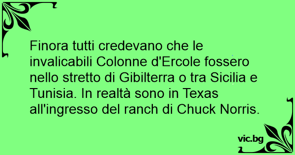Finora tutti credevano che le invalicabili Colonne d'Ercole fossero nello stretto di Gibilterra o tra Sicilia e Tunisia. In realtà sono in Texas all'ingresso del ranch di Chuck Norris.