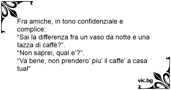 “Sai la differenza fra un vaso da notte e una tazza di caffè?”.