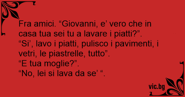 Fra amici. “Giovanni, e’ vero che in casa tua sei tu a lavare i piatti?”.