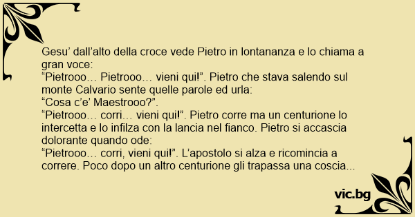 “Pietrooo… Pietrooo… vieni qui!”. Pietro che stava salendo sul monte Calvario sente quelle parole ed urla: