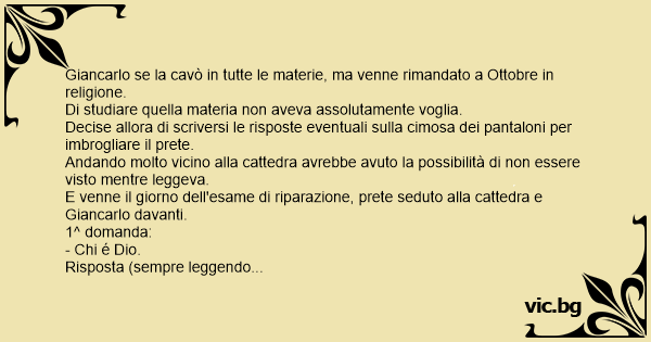Giancarlo se la cavò in tutte le materie, ma venne rimandato a Ottobre in religione.
