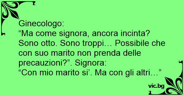 “Ma come signora, ancora incinta? Sono otto. Sono troppi… Possibile che соn suo marito non prenda delle precauzioni?”. Signora: