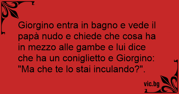 Giorgino entra in bagno e vede il papà nudо e chiede che cosa ha in mezzo alle gambe e lui dice che ha un coniglietto e Giorgino: