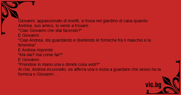 Al che, Andrea incuriosito, ne afferra una e inizia a guardare che sesso ha la formica e Giovanni: