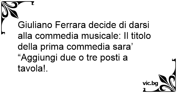 Giuliano Ferrara decide di darsi alla commedia musicale: Il titolo della prima commedia sara’ “Aggiungi due o tre posti a tavola!.