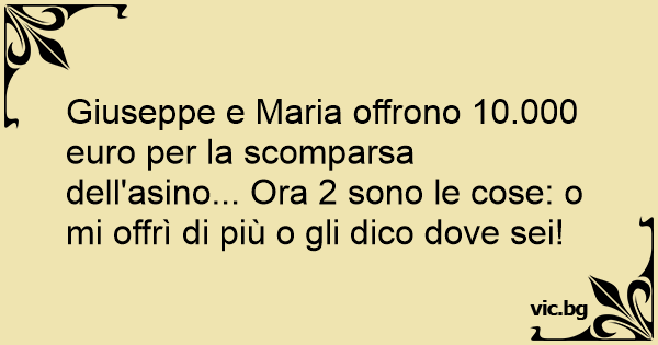 Giuseppe e Maria offrono 10.000 euro per la scomparsa dell'asino... Ora 2 sono le cose: o mi offrì di più o gli dico dove sei!