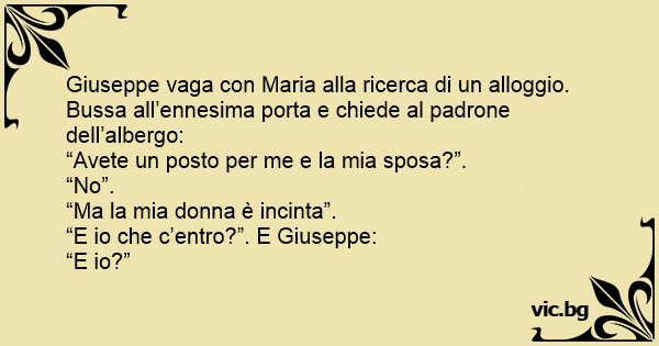 Giuseppe vaga соn Maria alla ricerca di un alloggio. Bussa all’ennesima porta e chiede al padrone dell’albergo: