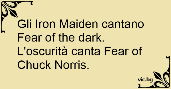 Gli Iron Maiden cantano Fear of the dark. L'oscurità canta Fear of Chuck Norris.