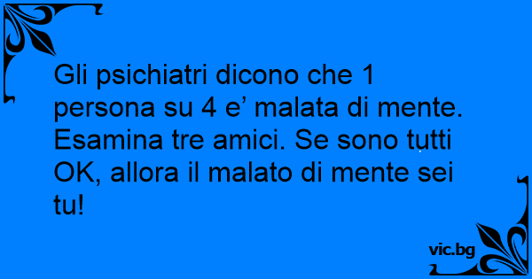 Gli psichiatri dicono che 1 persona su 4 e’ malata di mente. Esamina tre amici. Se sono tutti OK, allora il malato di mente sei tu!