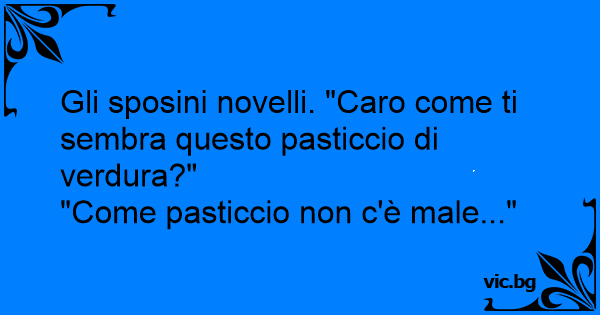Gli sposini novelli. "Caro come ti sembra questo pasticcio di verdura?"