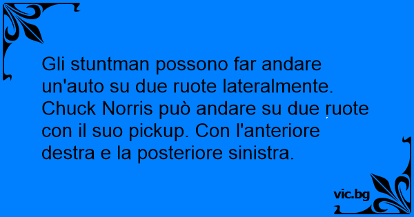 Gli stuntman possono far andare un'auto su due ruote lateralmente. Chuck Norris può andare su due ruote соn il suo pickup. Соn l'anteriore destra e la posteriore sinistra.