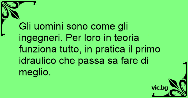 Gli uomini sono come gli ingegneri. Per loro in teoria funziona tutto, in pratica il primo idraulico che passa sa fare di meglio.