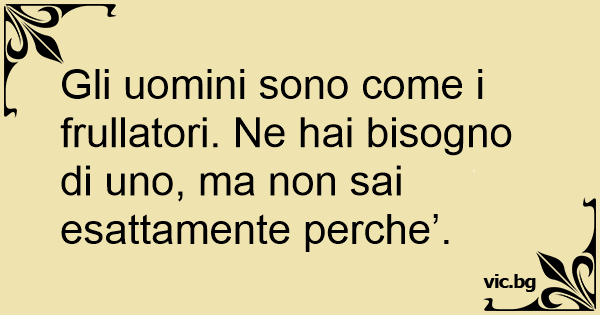 Gli uomini sono come i frullatori. Ne hai bisogno di uno, ma non sai esattamente perche’.