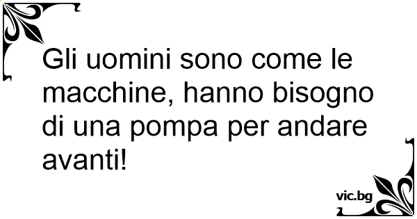Gli uomini sono come le macchine, hanno bisogno di una ромра per andare avanti!