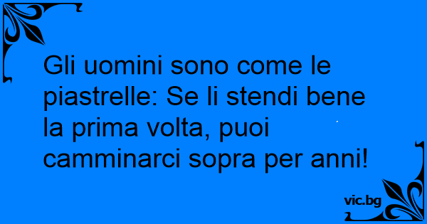 Gli uomini sono come le piastrelle: Se li stendi bene la prima volta, puoi camminarci sopra per anni!
