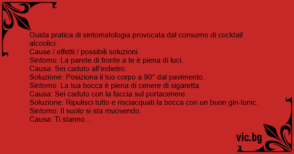 Guida pratica di sintomatologia provocata dal consumo di cocktail alcoolici.