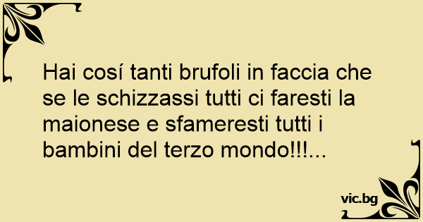 Hai cosí tanti brufoli in faccia che se le schizzassi tutti ci faresti la maionese e sfameresti tutti i bambini del terzo mondo!!!...