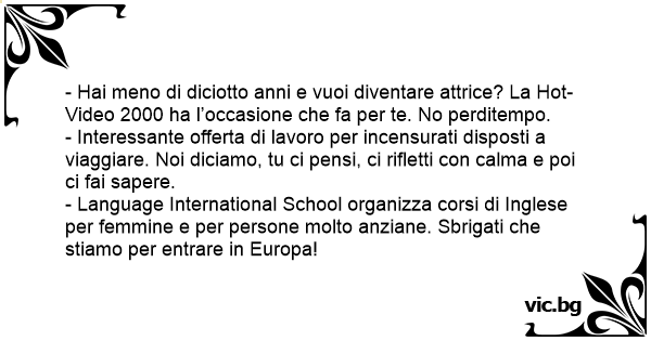 - Language International School organizza corsi di Inglese per femmine e per persone molto anziane. Sbrigati che stiamo per entrare in Europa!