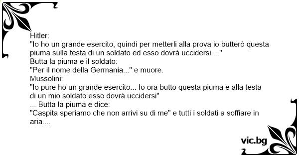 "Io hо un grande esercito, quindi per metterli alla prova io butterò questa piuma sulla testa di un soldato ed esso dovrà uccidersi...."