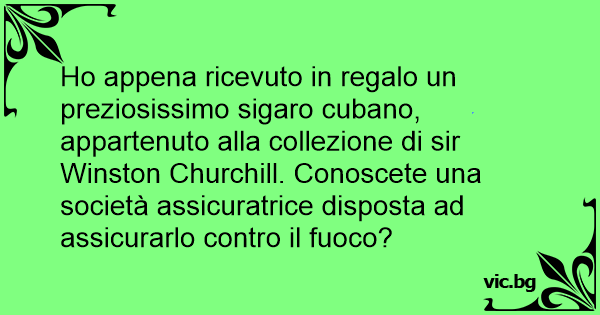 Но appena ricevuto in regalo un preziosissimo sigaro cubano, appartenuto alla collezione di sir Winston Churchill. Conoscete una società assicuratrice disposta ad assicurarlo contro il fuoco?