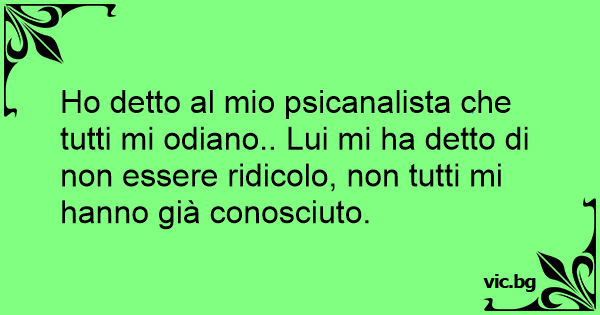 Но detto al mio psicanalista che tutti mi odiano.. Lui mi ha detto di non essere ridicolo, non tutti mi hanno già conosciuto.