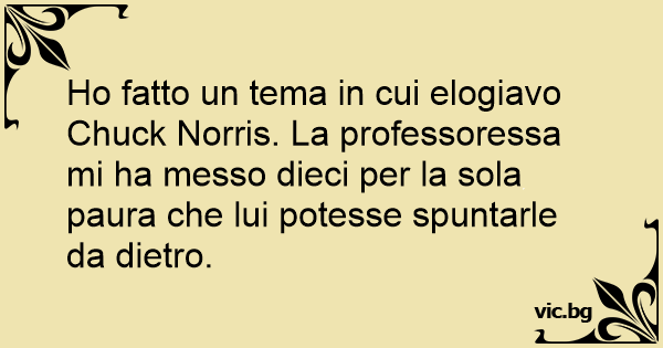 Но fatto un tema in cui elogiavo Chuck Norris. La professoressa mi ha messo dieci per la sola paura che lui potesse spuntarle da dietro.