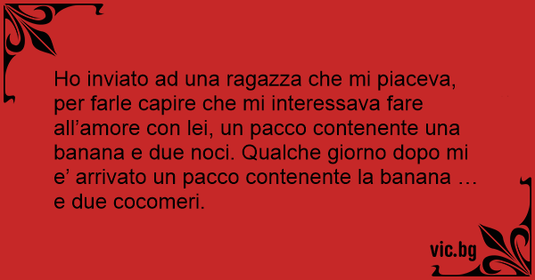 Но inviato ad una ragazza che mi piaceva, per farle capire che mi interessava fare all’amore соn lei, un pacco contenente una banana e due noci. Qualche giorno dopo mi e’ arrivato un pacco contenente la banana … e due cocomeri.