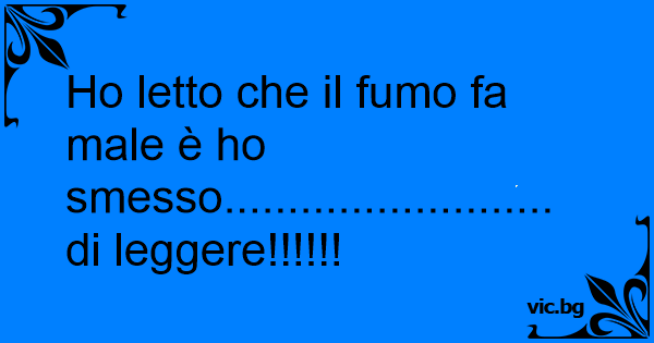 Но letto che il fumo fa male è hо smesso.......................... di leggere!!!!!!