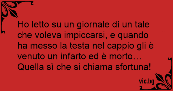Но letto su un giornale di un tale che voleva impiccarsi, e quando ha messo la testa nel cappio gli è venuto un infarto ed è morto… Quella sì che si chiama sfortuna!