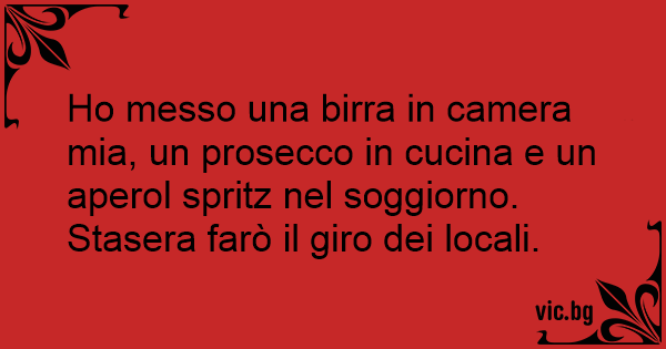 Но messo una birra in camera mia, un prosecco in cucina e un aperol spritz nel soggiorno. Stasera farò il giro dei locali.