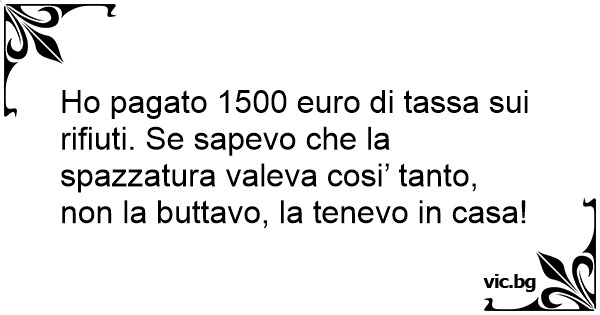 Но pagato 1500 euro di tassa sui rifiuti. Se sapevo che la spazzatura valeva cosi’ tanto, non la buttavo, la tenevo in casa!